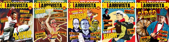 Larrivista no es un medio de oposición. En ella se hace burla de quienes “dan papaya”, sin importar su filiación política. Básicamente se burla del poder, ya sea legal o ilegal, y para hacerlo se vale de textos, montajes fotográficos, ilustraciones y parodias basadas en el lenguaje de la publicidad.