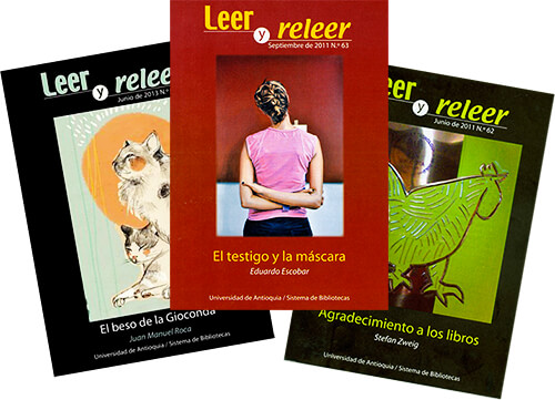 Leer y releer es una publicación literaria del Sistema de Bibliotecas de la Universidad de Antioquia, de la cual se publican cuatro números en el año con una periodicidad de tres meses y un tiraje de dos mil ejemplares. Dos características fundamentales de esta publicación son sus ensayos de buenos escritores, que por lo general merodean el tema de la lectura y de los libros, y sus ilustraciones, casi siempre originales, de artistas cercanos a nosotros en la Universidad o allende sus muros. Un matrimonio que, sin duda, se ha ganado el cariño de los lectores en su años de vida pública. Empezamos, como casi siempre en estos casos, tímidamente, pero luego el folleto ha tomado vuelo y ha aumentado su tiraje, ha cualificado su presentación en lo que tiene que ver con un mejor papel, el diseño de sus páginas, el color de sus pinturas, dibujos y grabados, y el volumen de los textos ahora más extensos, sin abusar de la paciencia de los lectores pero sin alcahuetear ninguna pereza o negligencia en tiempos en que buscamos afanosamente lo rápido y lo light.