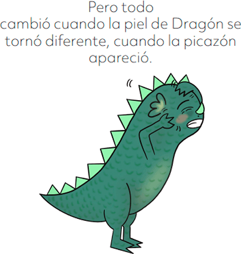 Emma emprende una aventura para conseguir la pócima mágica que le ayudará a sanar la piel de su amigo, un niño con alergia que de tanto rascarse se fue llenando de escamas hasta convertirse en un dragón. Cuento sobre la amistad y la dermatitis atópica.