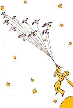 Un pequeño homenaje, discreto como un cordero dentro de una caja, al hombre que nos regaló la infancia, la honda respiración del cielo que no cuenta sus estrellas, al aviador que supo embriagarse de Sueño y escribió para nosotros, para recordarnos que hay una verdadera patria por recobrar, que sólo cuando miramos limpiamente aquello que miramos nos mira… Celebremos los 70 años que en El Principito cumplimos todos, y no esquivemos los ojos que muy serios y serenos nos inquieren desde el fondo de nosotros mismos…