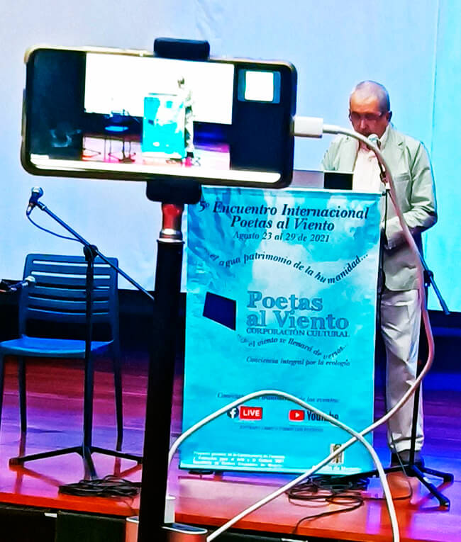 Recital de poesía con Alexander Cossio, Dariela Cecilia Espinosa Navarro (Dariela del Mar), Esteban Montana, Gabriela Cecilia Espinosa Navarro, Jorge Luis Álvarez Echeverri, José de Jesús Bedoya López y Violeta Muñoz. Poetas al Viento dedica esta presentación a Fernando González, al Mago de Otraparte, quien en su primer libro, «Pensamientos de un viejo», nos habla de temas como el amor, la muerte, el silencio, la meditación y otros asuntos del alma humana. En un aparte sobre la muerte, escribe: «Vendimión soñaba / desde su escondrijo. / Un amor le entraba / por el amasijo / de su carne enferma».
