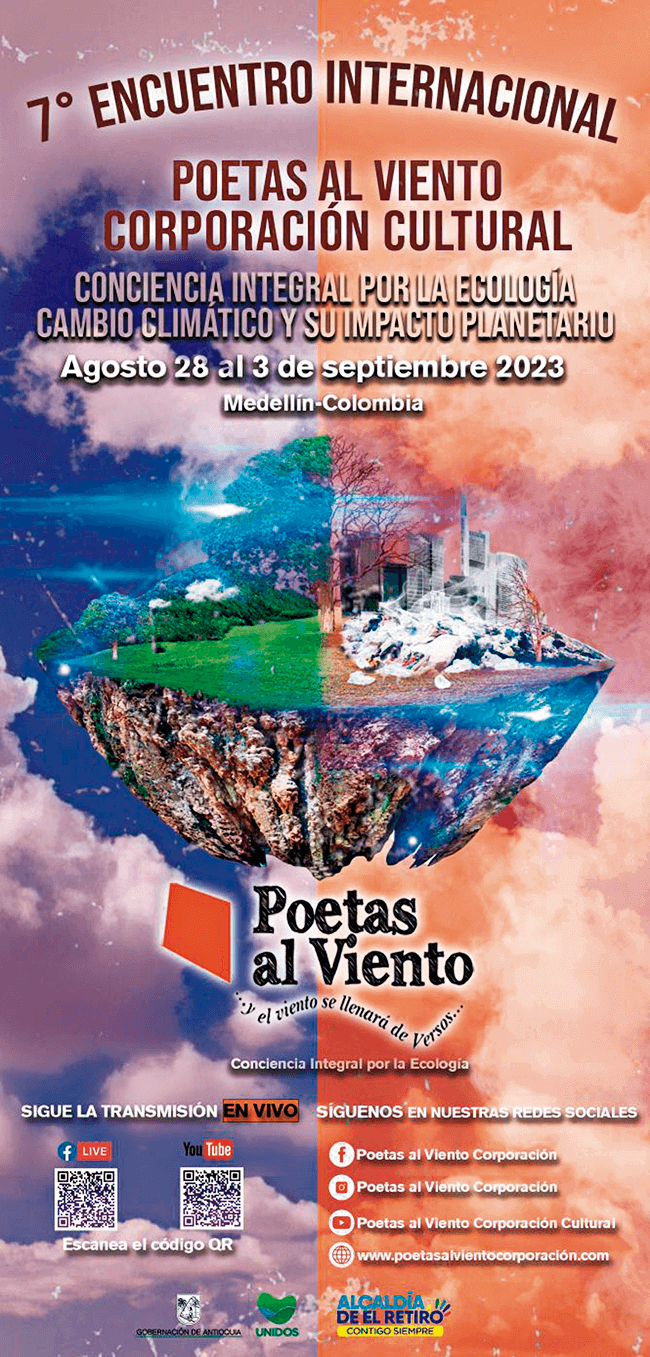El VII Encuentro Internacional Poetas al viento cuenta con el apoyo de la Gobernación de Antioquia como patrocinadora oficial y del Municipio de El Retiro. Acuden a este encuentro 108 poetas nacionales y 14 Internacionales, acompañados de 20 artistas nacionales e internacionales con la delegación del hermano país de Panamá como invitado de honor. Se realizarán veinte eventos que incluyen una caminata ecológica, dos simposios científicos sobre cambio climático y su impacto planetario y diecisiete recitales poético-musicales.