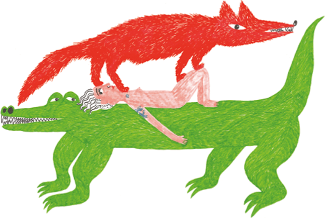 El zorro, el cocodrilo y yo fueron dibujados del dos mil dieciocho al dos mil diecinueve con lapiceros muji sobre una libreta A5 de tapa azul que me regaló mi madre mientras me enfrentaba a dos animales depredadores con los que fui experimentando maneras de domesticarlos y domesticarme.