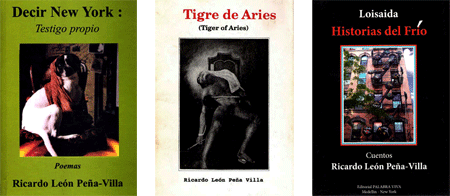 Ricardo León Peña-Villa (Medellín, 1962). Poeta, escritor, compositor y periodista. Actualmente se desempeña como codirector de la revista digital Redyaccion.com y fue director de la revista «Casa Tomada» (New York, 2004-2006), reportero de entretenimiento, arte y cultura para el diario «La Prensa» (New York, 1999-2002) y dirigió la revista de poesía y otras artes «La ñ» (1994-1997). Ha publicado «Sinasco» (poesía de tres autores en edición bilingüe, New York, 2007), «Loisaida: Historias del Frío» (cuentos, Medellín, 2005), «Decir New York: Testigo Propio» (poesía, Valladolid, España, 2002), «Treintaitres» (poesía, Medellín, 1996) y «Tigre de Aries» (poesía, edición bilingüe, New York, 1993). Tiene dos novelas inéditas: «Gardel Vive en Guarne» y «New York Okupas – New York Squatters». Actualmente prepara «Gayola Espiritual» (poesía).