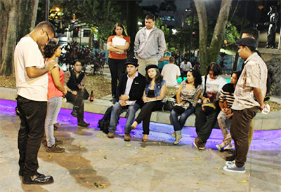 Lectura de poemas de Gloria Beatriz Jaramillo, Olga Elena Mattei, Omar Gallo, Pedro Arturo Estrada, Sandra Victoria Suárez y Sebastián Salazar.