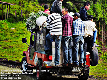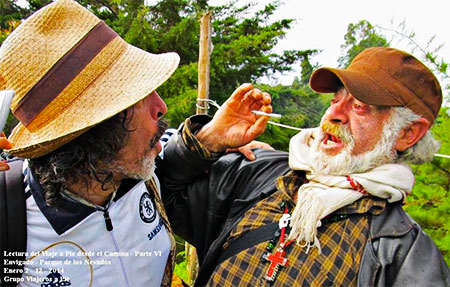 Al igual que El Brujo de Otraparte fuimos héroes al levantar nuestros pesados cuerpos, parásitos gravitatorios de ese lecho lleno de deseos, espantos, pesadillas y frustraciones, donde rondan fantasmas en noches lúgubres, frías y profundas. El premio fue el fuerte abrazo cargado de calor de piel, la sonrisa energizante que de inmediato nos hizo olvidar todas las neurosis e histerias colectivas, y por supuesto el seductor hálito del fantasma del Brujo rondaba en su huerta de Otraparte y nos llenaba el pecho de testosterona. Sentíamos la fuerza espiritual circulando y haciendo hervir nuestra sangre ese dos de enero antes de nuestra partida. El Brujo seducía nuestras piernas para no subyugarnos a pesadas barrigas, cuerpos exudando colesterol y tocino descompuesto, para sentirnos exploradores en el laberinto del paisaje montañero, para reír y danzar con el canto de la naturaleza, fundirnos en el rocío mañanero, danzar con las nubes y volar con el silbido del viento. Dejamos atrás la ciudad del diablo, la ciudad del peor miedo, como en ningún lugar del mundo, atestada de guardianes, policías y mercaderes de la muerte, la ciudad donde en cada paso se es un sobreviviente, donde la industria del robo, el cemento y la contaminación es un negocio pulpito. Estos caminantes panidas, locos chiflados, seducidos por el dios Pan, conectados con lo salvaje y lo bárbaro de una sociedad timorata y neurótica.