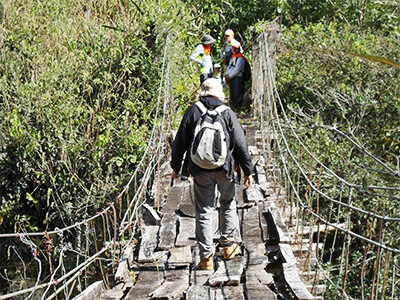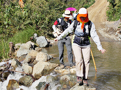 El camino nos atrapó con sus dulces y serpenteantes laberintos verdes. «¡Que sea infinito!», gritaron algunos viajeros. Nuevamente nos acarició con su pantano, con el agua que se desliza por nuestra piel, helando nuestros huesos. Y nos atragantamos de verde en todas sus texturas y tonos. El camino agudiza y exacerba las funciones vitales de estos locos viajeros a pie. Amantes de la aventura, soñadores de tierras prometidas, estrellas, planetas lejanos, nuestra curiosidad se abre con alegría a cada recodo del camino. Olemos a musgo y a tierra virgen. Nos tragó el lodo de los profundos canalones y nos bañó con sudor a mulas y arrieros. Escuchamos el agua indomable deslizarse, despeñarse, rugir, gritar, caer, sollozar, gemir, lamer la piel hasta descubrir el pellejo. Bailar la danza eterna de la armonía del caos. Nos transformamos en tierra, viento y nube. En cada paso cargamos nuestros sueños, dolores y miedos. El miedo a ser vencidos por una naturaleza insensible a nuestras egolatrías y lamentos. En el camino del laberinto verde llevamos también a cuestas nuestra esfinge…