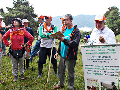 Este año cumplimos nuestro décimo aniversario con el proyecto “Lectura del ‘Viaje a pie’ desde el camino”, por lo cual esta versión tuvo un significado muy especial y nos regaló gratas sorpresas para los casi 40 asistentes a la travesía desde Envigado hasta Manizales. Tres municipios nos acompañaron con sus grupos, y las tertulias nocturnas tuvieron nutrida asistencia de viajeros y comunidades visitadas. La experiencia para los casi 300 viajeros a pie que nos han acompañado en estas diez versiones es más que gratificante, según sus comentarios y relatos, los cuales compartiremos en una próxima publicación. En el imaginario de los pueblos del “Viaje a pie”, el espíritu de “El brujo de Otraparte” ha renacido y cada año añoran nuevamente el sonido de sus pasos.