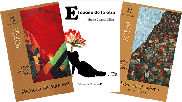 Yirama Castaño Güiza (Socorro, Santander, Colombia) es poeta, periodista y editora. Participó en la creación de la Fundación Común Presencia y de su revista literaria, que lleva el mismo nombre. Ha publicado los libros «Naufragio de luna» (1990), «Jardín de sombras» (1994), «El sueño de la otra» (Colección de Poesía Prometeo, Serie Hipnos, 1997; Ediciones El Humo, México, 2019), «Memoria de aprendiz» (Común Presencia Editores, colección Los Conjurados, 2011), «Malabar en el abismo» (antología, Común Presencia Editores, colección Los Conjurados, 2012), «Cuerpos antes del olvido / Corps avant l’oubli» (en coautoría con Aleyda Quevedo y Stéphane Chaumet, Ediciones de la Línea Imaginaria, Ecuador, 2016) y «Poemas de amor» (en coautoría con Josefa Parra, Ediciones Corazón de Mango, 2016). Sus poemas han sido traducidos y publicados en medios de Colombia y el exterior, así como en las antologías «Vientre de luz / Ventre de lumière – 14 poetas colombianas + Jattin» (Uniediciones, colección Ladrones del Tiempo, 2017), «Queda la palabra Yo – Antología de poetas colombianas actuales» (Ediciones La Palma, colección eMe, España, 2018) y «Pájaros de sombra – 17 poetas colombianas» (Vaso Roto Ediciones, 2019), entre otras. Forma parte del comité asesor del Encuentro Internacional de Mujeres Poetas de Cereté, Córdoba, y ha participado en los más importantes festivales de poesía de su país y en encuentros de escritores a escala internacional.