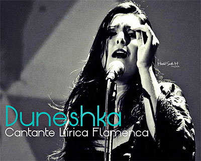 Inspirada en las coplas andaluzas, la canción española, obras de zarzuela y el repertorio tradicional flamenco, Duneshka presenta su proyecto musical como Cantante Lírica Flamenca rindiendo homenaje a diversos intérpretes y compositores que son el mayor referente de esta cultura musical, tales como Manuel de Falla y el trio de grandes poetas Manuel Quiroga, Rafael de León y Antonio Quintero, entre otros.