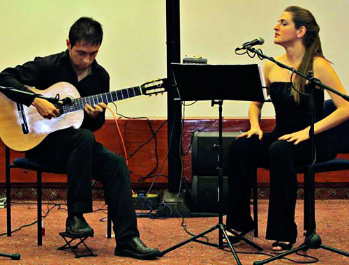 Giovanny Pérez Rojas (guitarra y voz) inició sus estudios musicales a los nueve años de edad con los maestros Marco Antonio Fernández Tello, Jairo Ojeda, Hernando José Cobo y Gloria Inés Fajardo en la Corporación Musical Palosanto (Calarcá, Quindío), donde realizó sus primeros conciertos como solista e integró el Cuarteto de Guitarras. Alternó su formación con talleres de Interpretación Guitarrística conducidos por los maestros Héctor González y Clemente Díaz de la Universidad del Valle. En 2001, gracias a un convenio entre la Agencia de Cooperación JICA y la Corporación Musical Palosanto, viajó a Japón e ingresó a la Escuela de Guitarra “Gendai Guitar” de Tokio, donde fue alumno del maestro Tomikawa Masatomo. Durante los años siguientes asistió de manera activa a los talleres de guitarra dictados por los maestros Takada Gentaro (2002), Roland Dyenz (2002), Andrew York (2003) y Shin-ichi Fukuda (2003). Participó en el concurso Departamental de Kanagawa en Japón (2003) y representó a este país en importantes eventos internacionales, tales como el recital de guitarra de la Escuela Normal de Música en París, Francia (2002), y el concurso de Guitarra Española en España (2003), certámenes en los que consiguió llegar a la final. Realizó recitales como instrumentista solista en el VII Festival Japonés en Hon-Atsugi en Japón (2003), la muestra musical en la Fábrica de Guitarras en la Isla de Cebú en Filipinas (2004), la inauguración del Salón Itoyotake en Japón (2004) y en eventos artísticos de las casas de la cultura de Atsugi y Kawazaki en el mismo país (2007). Después de regresar a Colombia ha contribuido con su arte en encuentros artísticos como el Gran Concierto Nacional para la celebración del 20 de Julio (Quindío, 2009), y el V Seminario Iberoamericano de Guitarra Clásica (Ibagué, Tolima, 2009), donde asistió a talleres con el maestro cubano Leo Brouwer, el chileno José Antonio Escobar, el boliviano Alexis Méndez y el colombocanadiense Arturo Parra. También asistió al VII encuentro Internacional de Guitarra y el V Concurso Internacional para jóvenes guitarristas de Compensar (Bogotá, 2010). Actualmente reside en Medellín, completa su formación en el Conservatorio de la Universidad de Antioquia y se desempeña como profesor de guitarra en la Escuela de Música Colombia Canta y Encanta.
