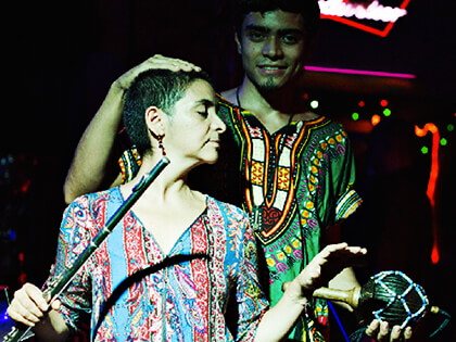El dúo musical Colombiano Juego Sonoro, conformado por Sandra Liliana Romero Hincapié (Bogotá) y su hijo Luis Miguel Jaramillo Romero (San José de Costa Rica), presentará en su concierto Atmósferas Electrónicas una fusión electroacústica, ensamblando su característico sonido artesanal de ocarinas, bongó, ukelele y voz con sonidos y efectos electrónicos. En la parte vocal intervendrá el cantautor Federico Gómez como artista invitado a esta gala musical de creación y sentimiento.