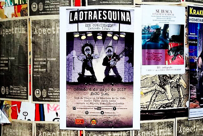 La Otra Esquina es una propuesta de rap alternativo que nace en homenaje a Fernando González, el Brujo de Otraparte. La música urbana y el beat característico del rap se fusionan con ritmos universales y tradicionales, interpretados a la luz de líricas disidentes y estructuras poéticas que evalúan y reconsideran el sistema de valores éticos y morales imperantes en la sociedad colombiana y el individuo. Recientemente publicaron la presentación en vivo de «Somos (América Sinécdoque)», su nuevo trabajo musical realizado en compañía de Chalupa Travel y Diego Ortiz Morales.