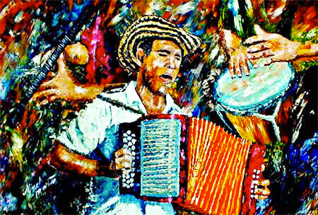 Apoyado en videos musicales, Luis Javier nos hablará de la historia del vallenato. Según el blog Universo vallenato: “Tanto el vallenato como el acordeón fueron despreciados por la aristocracia en la época de la colonia española en Colombia. Hoy son el orgullo de todas las clases, pues con el tiempo fueron ganando terreno. Como término, ‘vallenato’ se utilizaba en forma despectiva para llamar a las personas que tenían la enfermedad de la piel (carate), producida por la picadura de un insecto que dejaba manchas. Cuándo fue que se desvirtuó su significado y se le permitió que identificara a la música de acordeón, no es claro entre los investigadores. Entre los mercaderes de la época apareció un instrumento musical de origen alemán, que al hacer trueque de mercancías empezó a filtrarse en la cultura del pueblo. Era el acordeón, creado por Kiril Damián. Entre finales del siglo xix y comienzos del siglo xx existió un selecto grupo de acordeonistas. Algunos antecedieron a ‘Francisco el hombre’, entre quienes se recuerdan los nombres de José León Carrillo, Abraham Montero, Cristóbal Luquez, Agustín Montero, Francisco ‘Chico’ Bolaños y Luis Peñaranda”.
