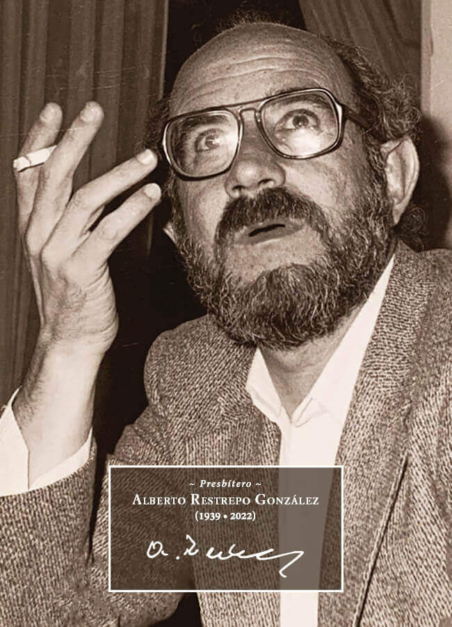 Alberto Restrepo González (1939-2022) fue filósofo y teólogo, sacerdote y escritor. Adelantó estudios eclesiásticos en los Seminarios Menor y Mayor de Manizales. Fue vicario cooperador en Chinchiná y párroco en Palestina, Filadelfia, San Diego, Arboleda y Montebonito en el Departamento de Caldas. Se desempeñó como profesor universitario, columnista de prensa, capellán del Servicio Nacional de Aprendizaje – SENA, colaborador del Centro de Evangelización y Catequesis de la Arquidiócesis de Manizales – CECAM y catedrático del Seminario Mayor de Panamá. Publicó los libros Testigos de mi pueblo (1978, 1996), Raíces aldeanas de la corrupción (1984, 2016), Para leer a Fernando González (1997), Escuelita (2004) y Modernidad, Postmodernidad, Transmodernidad y Evangelización, entre otros libros inéditos. Ver «Boletín n.º 193» del 20 de marzo de 2022.