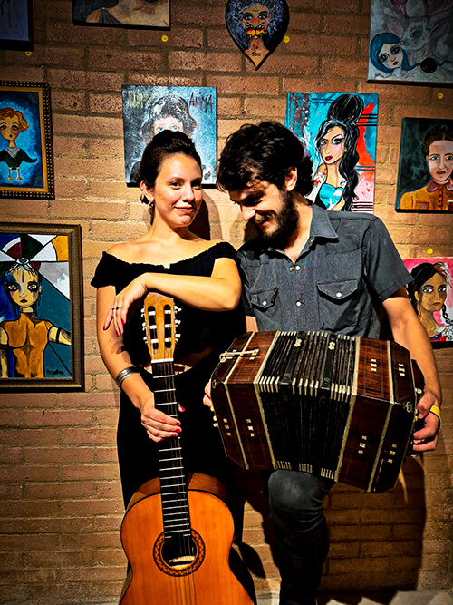 La agrupación NovenTango fue creada en 2015 y actualmente está integrada por Florencia Gelvez (voz y guitarra) (@florcitagelvez) y Fernando Vieyra (bandoneón), cuyo repertorio cuenta con tangos, valses y milongas de todas las épocas. Reúne la sangre joven y enérgica con el sonido criollo del tango, ofreciendo nuevos matices y colores que abren paso a una estética tanguera actualizada y muy vigente en la escena de Buenos Aires. Además de Argentina y Colombia, se han presentado también en Alemania, Brasil, Chile, España, Francia, Holanda, Italia, Perú, Suiza y Uruguay.