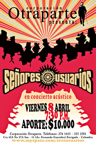 Banda plural con una fuerte influencia del “reggae music” jamaiquino y otros ritmos americanos, especialmente de la región Caribe y los grupos de rock de los años ochenta y noventa. Nuestra música nace da la libertad de expresión, la anarquía, el disfrute, el misticismo y la sabia contemplación de la naturaleza. Señores Usuarios ha participado en eventos como Festival Internacional Rock al Parque, Festival Internacional Altavoz, Festival Rock Naciente, Festival Skantipersonal, Festival de la Esperanza, Festival Antimilitarismo Sonoro, Festival Antioquia Vive la Música. La producción musical del grupo es de carácter independiente y se puede obtener en iTunes. La primera grabación (2003) es un sencillo que contiene tres temas; la segunda (2004) fue registrada en un concierto donde suenan viejas canciones de la banda y fragmentos de experimentación con sonoridades realizados esa misma noche; en 2005 terminamos de producir un nuevo sencillo con la participación de Mc Makanaki; y en 2007 presentamos la última producción fonográfica con la participación de Rasbarule.