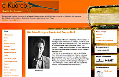 Cada 15 días los escritores Guillermo Bustamante Zamudio, Harold Kremer y Henry Ficher actualizan el blog de minicuentos e-Kuóreo, en donde se publican mini ficciones de autores nacionales e internacionales.