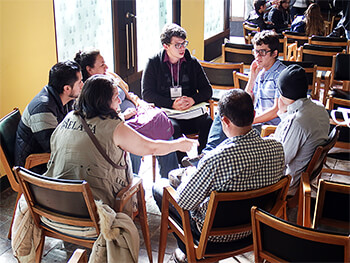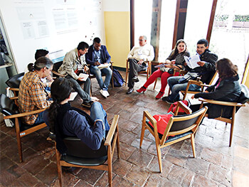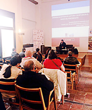 Como un espacio para conocer nuevos enfoques y experiencias de promoción de lectura y escritura, se invitó al profesor Carlos Sánchez, funcionario de la Secretaría de Desarrollo Social de Bogotá, para compartir la metodología de sus talleres, los cuales se realizan con población discapacitada del distrito.