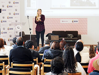 Doctora Nancy Prada en su charla sobre diversidad y tolerancia en el marco del posconflicto. Clic en la imagen para ampliar.
