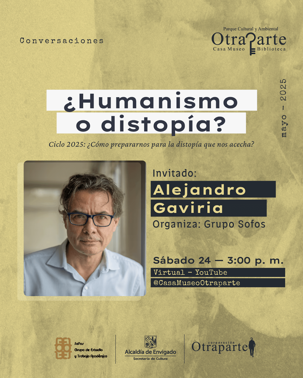 La conversación gira en torno al pensamiento humanista como respuesta frente a los escenarios de descomposición social, técnica y política que configuran distintas formas de distopía en nuestro tiempo.