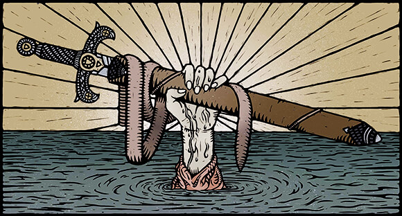 Pasados los años, el rey Uther murió sin haber dejado ninguna descendencia reconocida en su castillo, y el mago Merlín, convencido por algunos caballeros, decidió organizar un evento para solucionarlo y nombrar a un nuevo rey. El reto consistiría en sacar una espada, la espada de Excálibur, de un yunque de hierro dentro del cual se encontraba atrapada. Muchos fueron los que intentaron sacarla, pero ninguno pudo conseguirlo. Ninguno, salvo Arturo, que consiguió retirarla sin esfuerzo alguno.