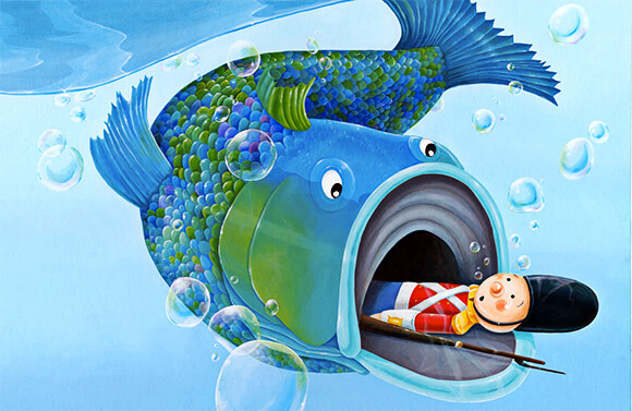Desgarróse entonces el papel, y el soldado se fue al fondo, pero en el mismo momento se lo tragó un gran pez.