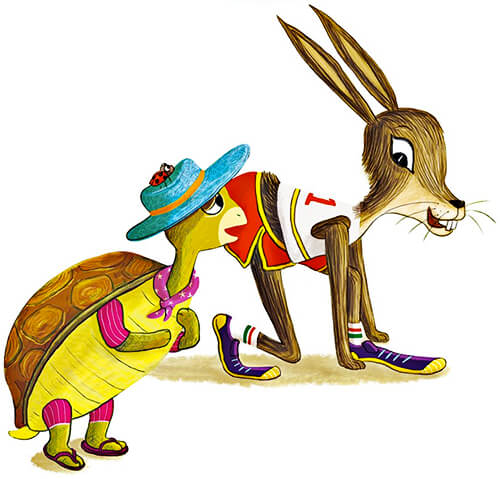 —¿Qué no llegaré tan pronto como tú? ¿Estás loca? —contestó la liebre. Tendrás que purgarte, antes de emprender la carrera.