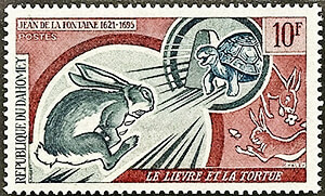 Nuestra Liebre no tenía que dar más que cuatro saltos; digo cuatro, refiriéndome a los saltos desesperados que da, cuando la siguen ya de cerca los perros, y ella los envía enhoramala, y les hace devorar el yermo y la pradera. Teniendo, pues, tiempo de sobra para pacer, para dormir y para olfatear el viento, deja a la Tortuga andar a paso de canónigo. Parte el pesado reptil, esfuérzase cuanto puede, se apresura lentamente; la Liebre desdeña una fácil victoria, tiene en poco a su contrincante, y juzga que importa a su decoro no emprender la carrera hasta la última hora. Regodéase paciendo la fresca hierba, y se entretiene, atenta a cualquier cosa, menos a la apuesta. Cuando ve que la Tortuga llega ya a la meta, parte como un rayo; pero sus bríos son ya inútiles: llega primero su rival.