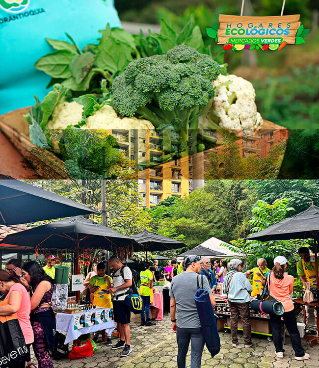 Un Hogar Ecológico es un escenario de vida y aprendizaje en el que participan familias rurales y urbanas agrupadas en núcleos veredales. El objetivo, con el acompañamiento de Corantioquia, es avanzar en la comprensión y práctica de acciones encaminadas a la construcción de sostenibilidad territorial, seguridad alimentaria y adaptación al cambio climático desde sus propias viviendas, parcelas, fincas, hogares, barrios y veredas. Es un proceso de educación ambiental vivencial en el que surge Mercados Verdes, iniciativa que busca promover el consumo responsable y local de diferentes opciones de alimentos y productos para el hogar hechos por campesinos y emprendedores de todo el departamento de Antioquia. Esta actividad se realiza de manera constante en espacios como los edificios administrativos de Corantioquia y las Empresas Públicas de Medellín, además de ferias y otros eventos en donde se generan alianzas entre los participantes.