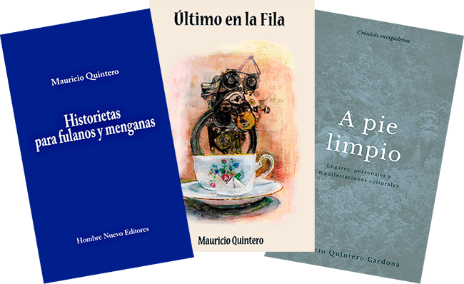 Mauricio Quintero Cardona es escritor, narrador oral y gestor cultural. Ha publicado «Historietas para fulanos y menganas» (Hombre Nuevo Editores, 2011), «Último en la fila» (Editorial Dóblese al Arte, 2017; Pandora Ediciones, 2019), «A pie limpio: crónicas envigadeñas» (Pandora Ediciones, 2021). Así mismo, su serie de nueve cuentos «Sala de espera» fue incluida en la antología de escritores envigadeños «Vigas contra el viento ii» (Casa de Poesía Porfirio Barba Jacob, 2012). Es miembro del colectivo literario EDITA – Red de Escritores y Editores Independientes (España e Iberoamérica) y sus cuentos han sido publicados en medios literarios como «La Jornada Semanal» (México D. F.), revista «Cronopio» (Medellín), el magazín cultural de «El Diario del Otún», revista «Las Artes del Periódico» de «La Tarde» (Pereira) y la compilación «EDITA 20 años» (Huelva, España). En 2020 ganó la IX Convocatoria de Estímulos de la Secretaría de Cultura de Pereira en la modalidad narración oral «Pereira Cuenta» y en la misma ciudad obtuvo el primer lugar en la convocatoria de Performance A62 con «Pergaminos en la oscuridad», montaje de narración oral de cuentos de misterio. Fue director del Taller Literario Libertad Bajo Palabra en las cárceles La 40 de Pereira y La Blanca de Manizales y desde 2016 dirige el Encuentro Internacional de Narración Oral Paisajes en Voces en Pereira y Marsella (Risaralda). Su microrrelato «El hoyo en el sombrero» obtuvo en septiembre de 2022 el primer premio en el XXIV Festival de Narración Oral «Verano de Cuento» en Tenerife, España. Durante varios años ejerció como guía y coordinador cultural en la Casa Museo Otraparte.