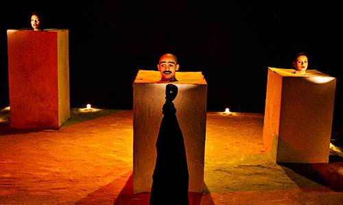 Obra de teatro de sala (versión libre), creada originalmente por el grupo Karavana Teatro con una duración de 60 minutos. El montaje surge de la necesidad de experimentar desde la imagen, el ‘performance’ sonoro y la improvisación. Son situaciones para la condición escénica: la imagen hecha palabra, la palabra hecha imagen.