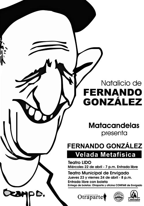 La puesta en escena de Fernando González, Velada Metafísica, quiere crear la maravillosa ilusión de que todavía está en su granja de Otraparte, en Envigado, que los colombianos podemos seguir conversando con él. Hay dos hombres que fueron tierra de la tierra y no deberían haberse muerto nunca. El otro es Sócrates.