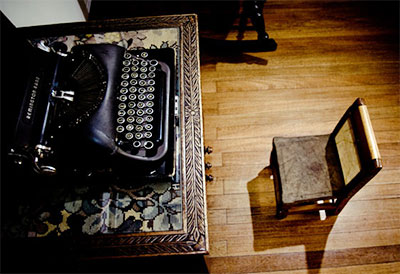 Cuando yo lo visitaba, subía a su alcoba donde escribía, sentado en una sillita chiquita, con la máquina de escribir sobre una silla de tamaño normal. Las rodillas le llegaban hasta el pecho, y yo le pregunté por qué tenía una sillita que era chiquita, como para mí (5 años). Me dijo que así le gustaba escribir. La sillita, de ésas que colgaban fuera de los almacenes en la Plaza de Envigado, era el símbolo del puente espiritual que nos unía.