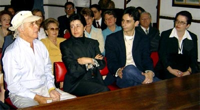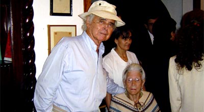 Simón González abraza a doña Ligia González Ochoa, hermana menor de Fernando González.