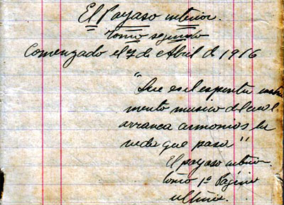 Fernando González, que iba a cumplir 21 años el 24 de ese mismo mes de abril de 1916, tenía planeado por lo visto publicar de inmediato El payaso interior. No lo hizo. ¿Por qué? Tengo la impresión, a raíz del contacto con la libreta manuscrita del maestro en la labor de transcribir su no siempre clara caligrafía, que nuestro escritor no reelaboró sus notas (como siempre hizo con sus otros libros) y presuntamente destruyó lo que se perdió. Tal vez la publicación de Pensamientos de un viejo dejó en agraz su nuevo proyecto; tal vez, siempre con su indómita búsqueda, juzgó que El payaso… no aportaba mucho a lo ya planteado en su primer libro; tal vez no le dejaron espacio ni tiempo los estudios de Derecho que culminaría en 1919 con su tesis El derecho a no obedecer, titulada finalmente Una tesis, para tranquilidad de los pacatos examinadores.