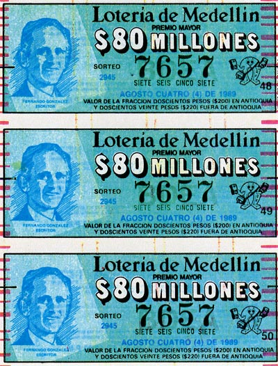 Billete de la Lotería de Medellín dedicado a Fernando González. Contribución de Miguel Escobar Calle para la Casa Museo Otraparte.