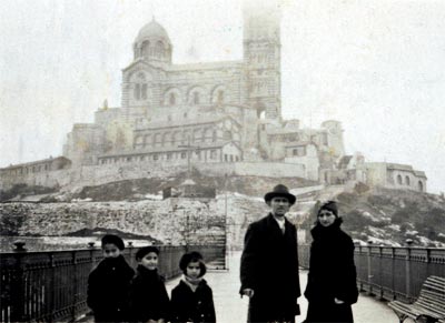Fernando González y doña Margarita con sus hijos Álvaro, Ramiro y Pilar. Iglesia Nuestra Señora de la Guarda, Marsella, diciembre 30 de 1932.