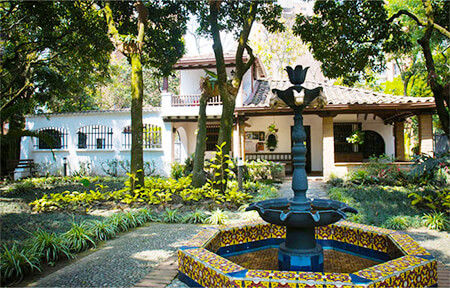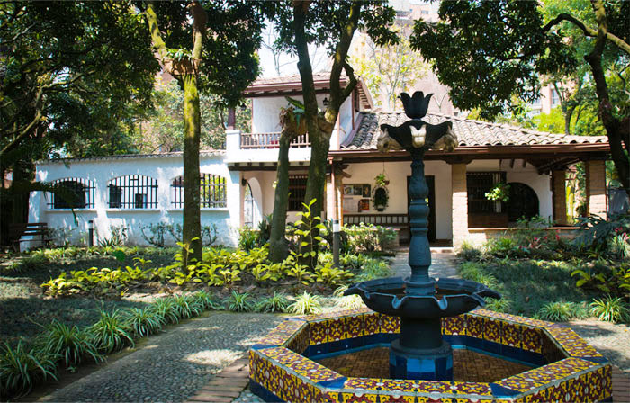 La fuente del antiguo parque de La Estrella (1). Las lámparas que fueron de la capilla de Envigado. El capitel en forma de sátiro y el arcón, que una carabela perdió en el golfo, camino de Santa María.
