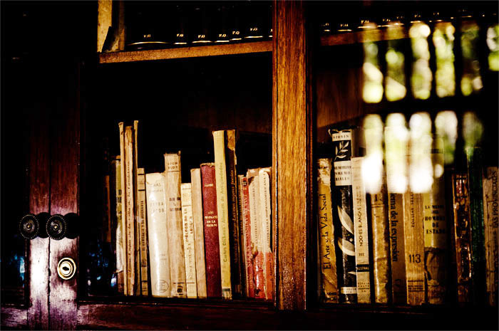 Sobre el arco de entrada a la biblioteca coloqué un Santo Tomás de Aquino, de medio bulto en leño, de unos 40 centímetros de largo. Me lo regaló Jorge y dizque lo trajeron los franciscanos cuando la Iglesia de San Benito era pajiza.