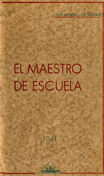 El maestro de escuela fue publicado en su edición príncipe por Editorial ABC (Bogotá), con una sencilla carátula en cartón manila en la que escuetamente aparecen el nombre del autor, el título de la obra, el año (1941) y el logotipo de la editorial (1). Son apenas 135 páginas. El epílogo termina: “Requiescat in pace. Ahora sí estoy muerto. Ex Fernando González. La Huerta del Alemán, Envigado, 12 de febrero de 1941”. Y concluye el libro con un aparte final titulado “El idiota”, que el autor había publicado en el número 10 de la revista Antioquia (febrero de 1938) (2), que en su último renglón cierra la obra con esta expresión: “¡Putísima es la vida!”.
