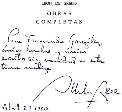 “Para Fernando González, único hombre y único escritor sin vanidad en esta tierra mestiza”.