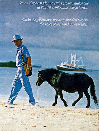 “Son aproximadamente las seis de la tarde, hora mágica del crepúsculo. Del Puente de los Enamorados, Lovers Lane, construido por Simón y el más bello del planeta Tierra, saldrá la comitiva dirigida por Carlos Archibold Cerón, en su nuevo yate, de nombre Sea Rider. Otra lancha será contratada y los que voluntariamente quieran ir; llevarán “la comitiva”: músicos de la Isla y un grupo de bailarinas jóvenes (de 10 a 18 años), del Colegio Junín o, en su defecto, de un grupo de los que se forman para los carnavales de la Isla”.