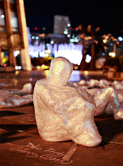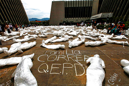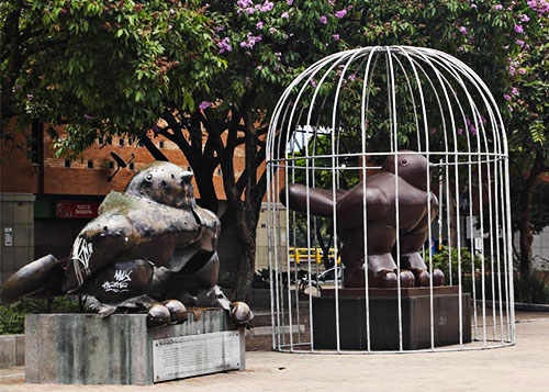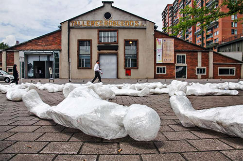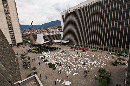 El 9 de abril de este año, junto a otros ciudadanos y entidades culturales, lideramos el montaje de una propuesta artística alterna al encuentro internacional ONU Hábitat y el WUF7 por medio de la instalación “La piel de la memoria”, realizada en el Centro Administrativo La Alpujarra bajo el lema “¡Oh, no! ¿Hábitat?”. Allí se expusieron más de mil figuras moldeadas con plástico y cinta pegante teniendo como "modelos" a los familiares de algunos desaparecidos con el fin de recordarlos y exigir justicia. De otro lado, al grito de “Liberen el sueño” fue enjaulada la “Paloma de la Paz”, hermana menor de la escultura “El pájaro” del maestro Fernando Botero, dinamitado por el Cartel de Medellín en 1995con un saldo de casi 30 muertos y aproximadamente 100 heridos. El objetivo de la jaula es recordar a los secuestrados que ahora sufren nuestro olvido. Esta fue retirada por Espacio Público y nuevamente instalada entre el 23 y el 25 de mayo, día de las elecciones presidenciales.