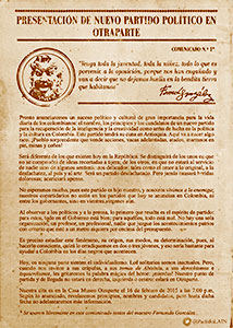 Será diferente de los que existen hoy en la República. Se distinguirá de los unos en que no se compondrá de ideas recortadas a tijera; de los otros, en que no estará al servicio de nadie sino de algunos sentimientos delicados, tales como el amor a lo original, a la desfachatez, al país y al arte. Será un partido desfachatado. Pero jamás causará heridas dolorosas; acariciará apenas.