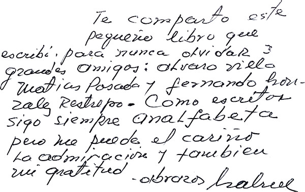 En tu libro haces un homenaje, con nombres y apellidos, a tres grandes amigos que, nos confiesas, marcaron tu existencia: Álvaro Villa, Matías Posada y Fernando González Retrepo. Con nombres y apellidos, repito, porque los verdaderos amigos nunca son anónimos. Más que una semblanza o una nota biográfica de unas personas dignas de recordación, el lector podrá revivir, si pasa sus ojos por las páginas del libro, la emotiva memoria de esas amistades, con episodios que fueron decisivos en tu destino; con frases y pensamientos de sus conversaciones que ibas apuntando en tu cuaderno de bitácora; con cartas o mensajes que recibiste y sacas del archivo para que los lectores conozcamos y sintamos su «presencia en la ausencia».