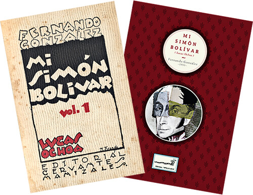 Portada de la edición príncipe de 1930 y la de 2015 de Ediciones Otraparte del libro Mi Simón Bolívar de Fernando González.