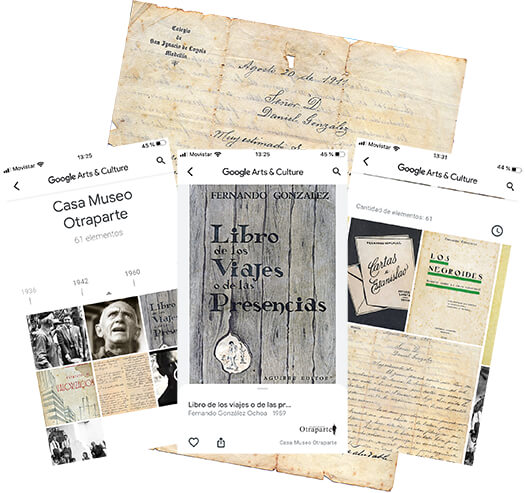 Atendiendo la invitación que recibimos directamente de Google, hemos publicado más de sesenta fotografías y facsímiles de nuestro archivo museográfico y hemos organizado dos exposiciones virtuales —traducidas al inglés— en el portal «Google Arte & Cultura», que recoge el legado más selecto de la historia de la cultura universal. La exposición El viaje a la Presencia destaca cada uno de los 16 libros que publicó Fernando González, mientras De la rebeldía al éxtasis hace un breve recorrido biográfico.