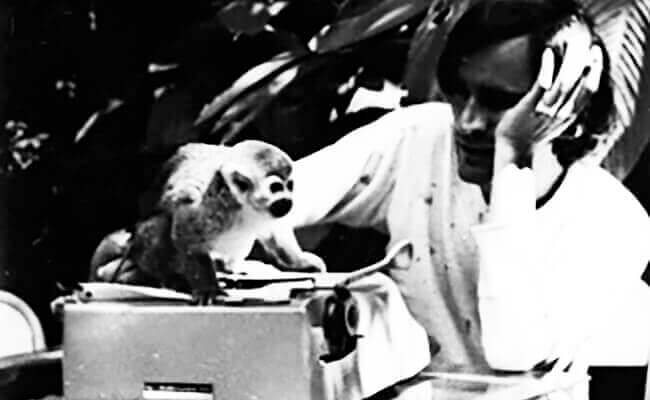 Mientras Gonzalo agita y escribe, escribe, aporrea la máquina de francotirador de escribir, sus sobrevivientes discípulos de buena o mala gana apoyan el enfebrecido tecleteo de la Olivetti del Profeta, sostenida a punto de huevos tibios, Nescafé y fe, con atropellos y escándalos en sus provincias.