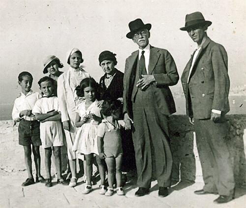 Los niños: Álvaro, Ramiro, Pilar y Fernando. Don Carlos E. Restrepo, Embajador de Colombia ante la Santa Sede, y doña Isabel Gaviria de Restrepo. A la derecha, Fernando González.